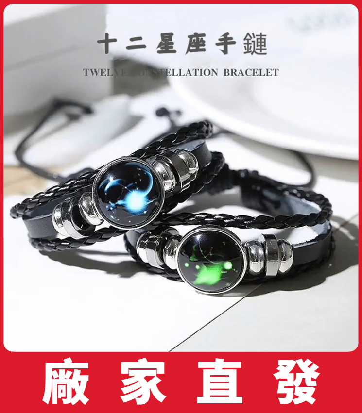 2分鐘前夜光手鍊十二星座皮繩手串學生潮人情侶飾品首飾女韓版時尚帥氣 - 【夜光手鍊十二星座 三入组】